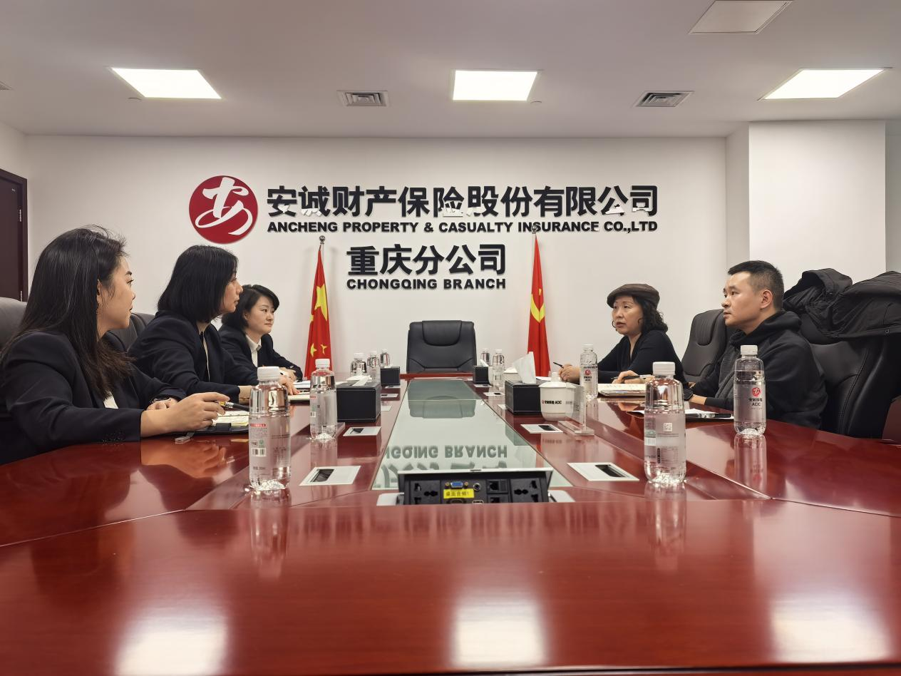 2025年12月3日,重庆财经学院金融学院院长贺晗、保险学特聘专家王利、保险学专业老师朱特红一行,共赴安诚财险重庆分公司开展校企合作交流。安诚财险重庆分公司总经理尹平、人事行政部况思捷、政保管理部陈妍宇参与座谈会,双方围绕人才培养、实习实践等议题达成共识。