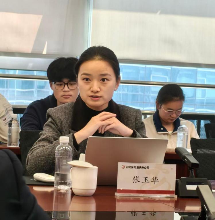 座谈会上,张力元介绍了安诚保险重庆分公司的发展概况、经营现状及党建工作特色,并希望以此次共建为契机,将党组织优势转化为校企协同育人优势。况思捷副经理围绕“实践育人、精准就业、产教融合”方向,介绍了企业人才培养体系及校企合作思路,并就实践中学习、双导师制、技能竞赛等合作方式进行了初步方案分享。