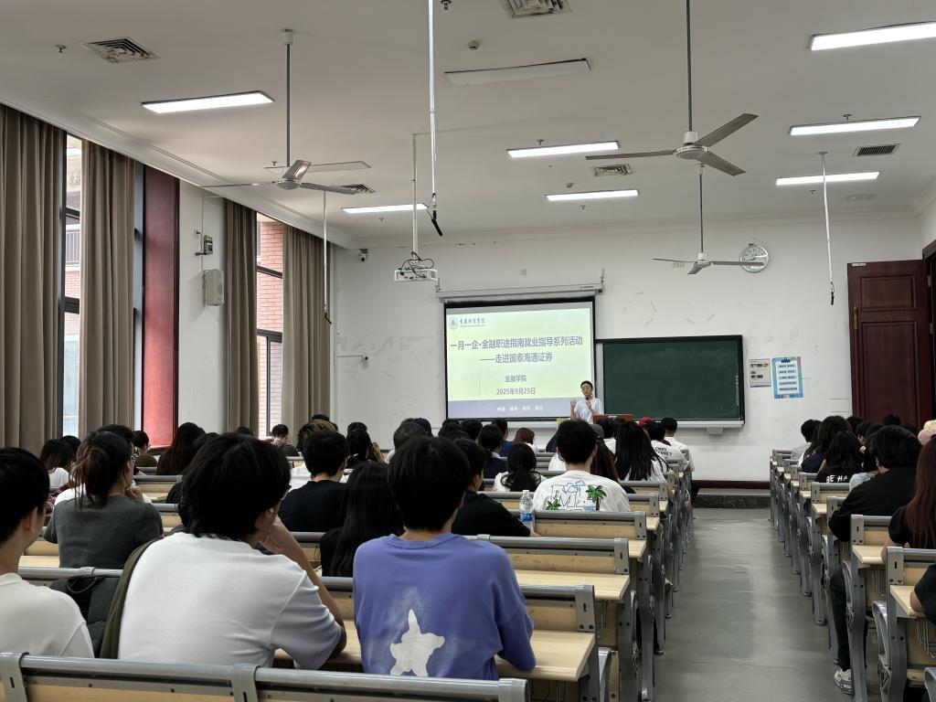 9月25日下午,金融学院举行了“一月一企·金融职途指南”系列就业指导活动之“走进国泰海通证券”。金融学院党总支书记张玉华首先代表学院对国泰海通证券重庆分公司数字金融部总经理吕运伟、数字金融部李治锐两位嘉宾的到来表示热烈欢迎,并对“一月一企”活动的创办初衷与育人价值作了简要阐述。