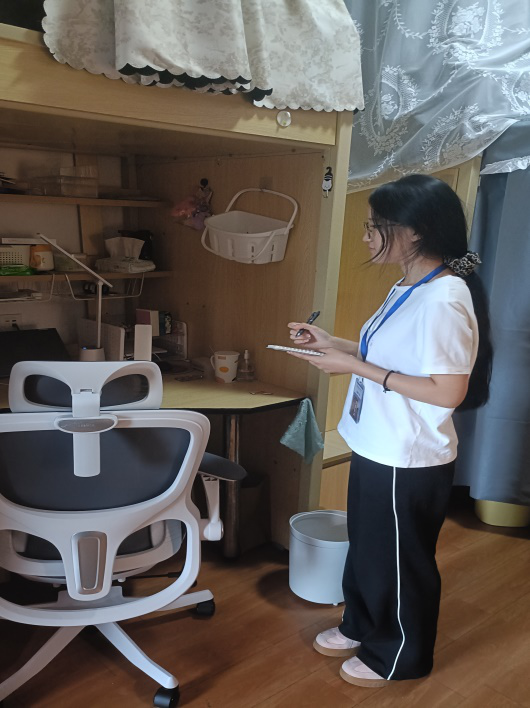 培训结束后,由专职辅导员带队,全体生活委员分组深入学院所有学生宿舍,开展全覆盖、无死角的安全卫生检查。检查过程中,生活委员们严格按照评分标准,对宿舍卫生状况、物品摆放、用电安全等方面进行细致检查与打分,同步向同学们宣传安全用电、节约用水、禁止使用违禁电器、严禁饲养宠物等管理规定,积极普及文明宿舍建设标准,做到“检查+宣传”双管齐下。