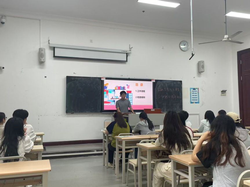 当日下午,学院在1302教室举行生活委员履职专题培训会。楼管主任张凤瑛以“生活委员职责与检查核心内容”为主题,结合多年管理经验,围绕以往检查中发现的典型问题——如宿舍卫生脏乱、违规使用电器、私自饲养宠物等,从“职责认知、沟通技巧、应对措施”三个维度,系统梳理了生活委员在日常监督与检查中的关键要点。她强调,生活委员要以“细心、耐心、责任心”为工作准则,主动对标检查标准,提前开展自查自纠,及时发现问题、反馈问题、推动整改,真正发挥基层监督“前哨”作用。本次培训坚持“以‘训’定标、以‘查’促效”的工作思路,将《宿舍检查细则表》作为行动指南,强化规范意识与实操能力,切实提升生活委员的履职水平,进一步夯实学生社区管理基础。